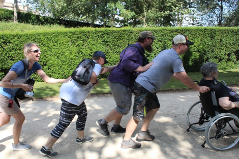 Maybe the wheelchair is secretly motorised… Great concept.